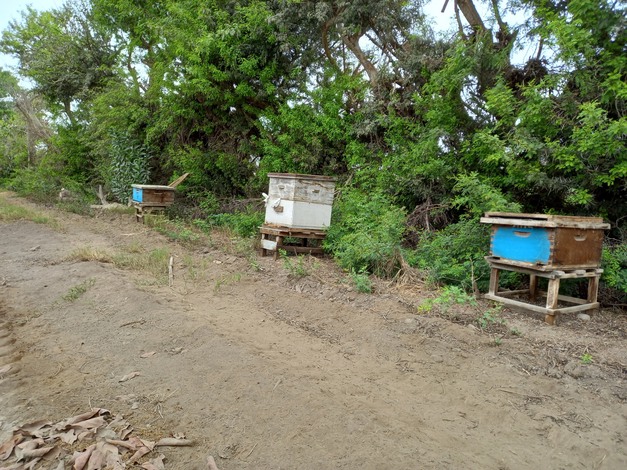 蜂箱沿着一排树木摆放,这样可以保护地块免受来自五公里外太平洋的湿冷风带来的真菌问题的影响。