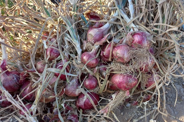 在 Majes 地区,红洋葱的种植也非常成功。Nina 说:"我们的产量高达每公顷 50-60 吨","洋葱要在田里晾晒 6 天"。