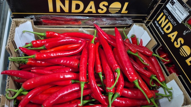 "例如,西班牙的辣椒价格上周上涨,直到上周四价格还算不错,但现在顾客似乎没什么兴趣。红辣椒的价格在 16-17 欧元左右,青辣椒的价格在 14-15 欧元左右。供应量不算特别充足,但运输问题影响了质量,而且没人敢囤货,尤其是在这样的价格水平下。"