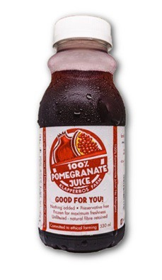 © Klapperbos Farm他还榨取自家 Acco 石榴的汁液,但由于 Klapperbos 石榴汁非常新鲜,无法运往西开普省以外的地方。而石榴糖浆则可以运往任何地方,因为其低 pH 值和高果糖(注意,不是蔗糖)的组合能够有效保存产品。