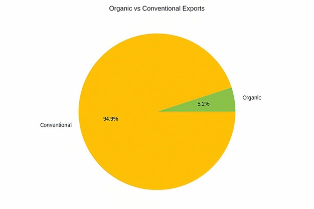 有机蓝莓的份额保持稳定,出货量为 172 吨,占总量的 5%,与往季持平。有机蓝莓产季仍然主要面向北美和欧洲市场。