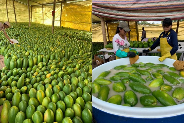 © Green Control 左:Alex Bustos(左)在 Solo Sunrise 木瓜田里。右图:Passion 红木瓜。