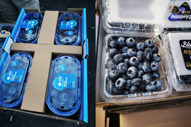不同规格的云南蓝莓;左为24mm+规格的"八合一"包装