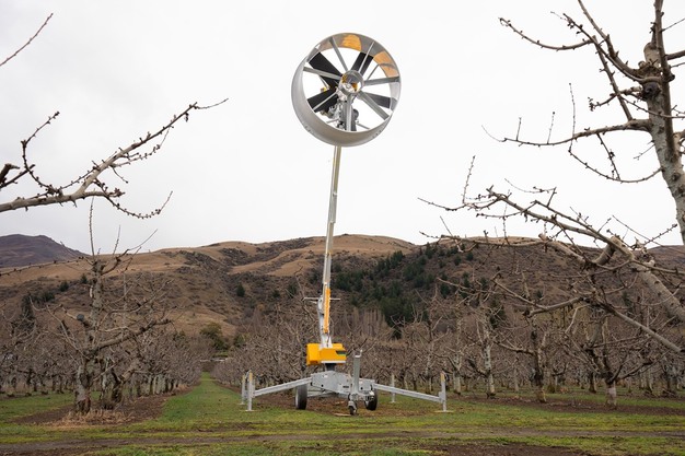几年前,Theunissen Fruit 是该地区最早投资购买 Frost Fans 公司移动式风机的果农之一。Frost Fans 的父亲做出这个决定是基于一个众所周知的原理:在霜冻之夜,这些风机可以将高层大气中的暖空气向下输送,并与近地面的冷空气混合,从而帮助保护果树。