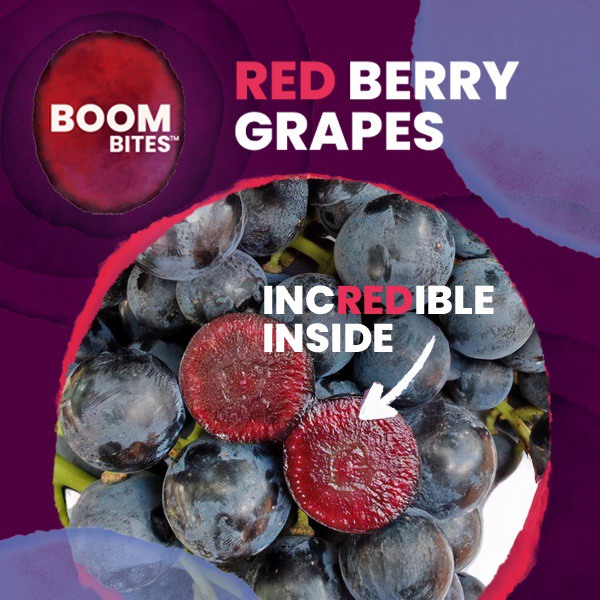 Boombites™ Red Berry Grapes 是英国公司 Bloom Fresh(8.2 号展厅,A-80 展位)与一些世界领先的鲜食葡萄生产商合作的成果。这一新品种的研发历时十余年,不仅口感极佳,而且富含多酚,多酚以其抗氧化和抗炎特性而闻名。