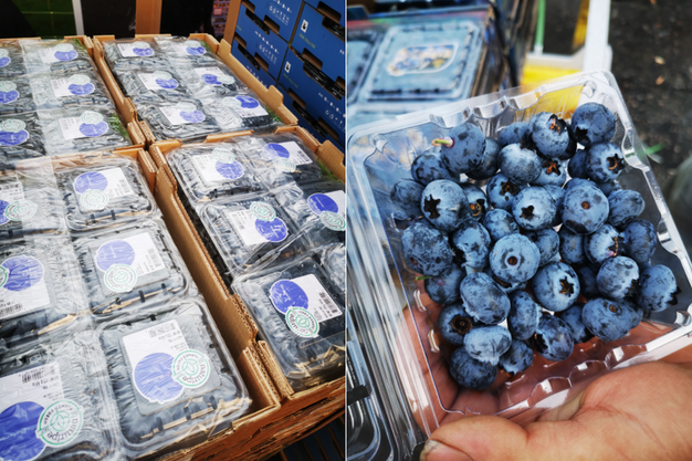 左:秘鲁蓝莓;右:中国产"花香"蓝莓