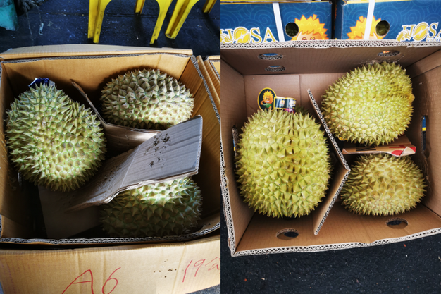 左:泰国金枕榴莲;右:越南金枕榴莲