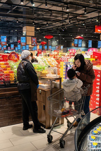 右图:Tessa 在中国超市品尝