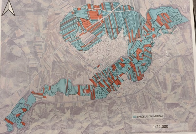 Huétor Tájar 市周边被淹地块地图