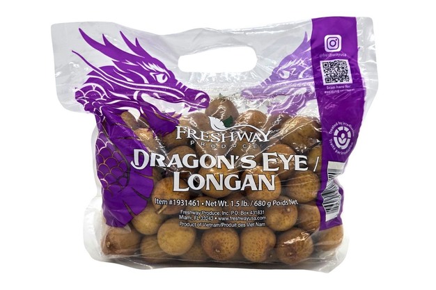 Freshway 从越南进口龙眼,运抵美国西海岸,然后分销至全美各地。Freshway Produce与包装解决方案制造商 PPC Flex 合作,开发出能够延长龙眼保质期的包装。"这让零售商更有信心销售高品质产品,"Roggiero 评论道。包装好的龙眼以 Dragon's Eye 品牌销售,在即将到来的中国新年(本周庆祝)前夕,为消费者提供了一个尝试新产品的绝佳机会。"品牌包装也让零售商有机会更好地服务于喜爱异域产品的消费者群体。" Freshway Produce 的所有龙眼均以包装形式销售,并提供不同重量选择。