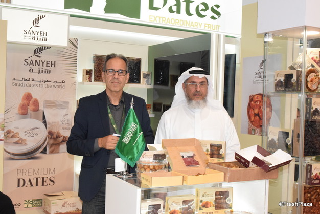 沙特展馆已成为主要国际新鲜农产品贸易展的永久性特色。其优雅的绿色展台吸引着参观者的目光,所有展台都展示着同一种水果--椰枣,尽管有多个品种。展馆背后是国家棕榈和椰枣中心,该机构负责组织沙特参展商参展,支持生产和营销,并向广大国际公众推广椰枣。