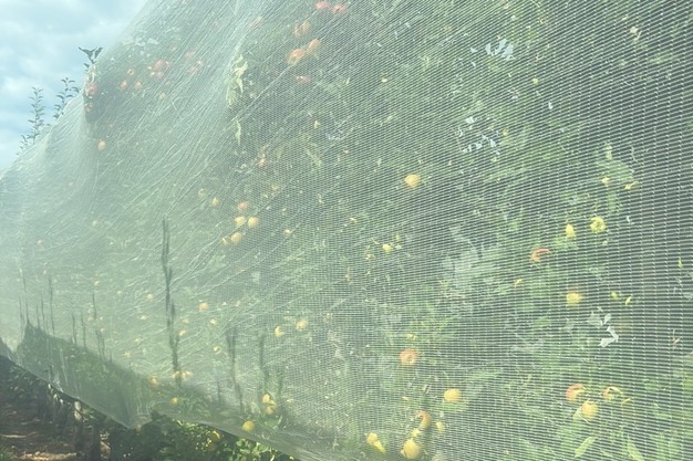 "总的来说,我们地区的作物长势喜人。我们需要一些温暖的白天和寒冷的夜晚来完成作物的成熟,才能达到理想的大小和色泽。我们第一批 Evercrisp 苹果长势极佳。我们通过Heartlandland 水果公司销售这种苹果。对于我们的果园来说,这是一个令人兴奋的新品种。它是我尝过的最甜的苹果。Evercrisp 采用的是 Simon 开发的新型牛角网式栽培系统。他说,这种系统在新西兰越来越受欢迎,可以替代固定网。"