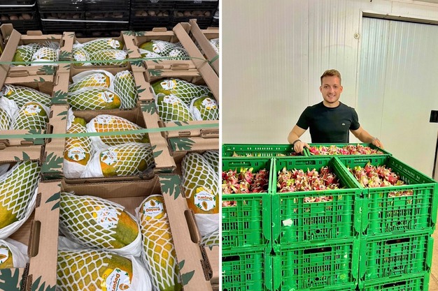 他们主要向欧洲出口 Formosa 木瓜和红火龙果,并利用位于葡萄牙里斯本的物流枢纽,将水果分销到西班牙、荷兰、波兰、英国、意大利和法国等国家。货物通过空运,每周运输量在 20 到30 托盘之间,每周两次到货,以确保水果的新鲜度。
