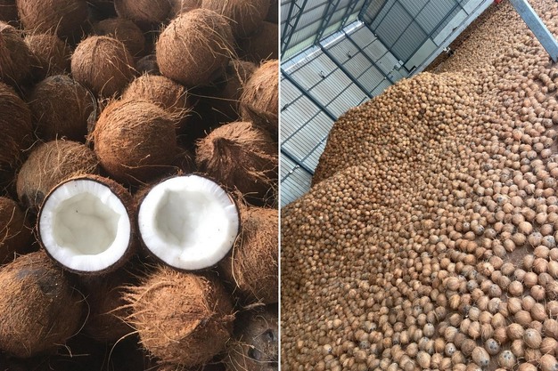 出口到欧洲的新鲜椰子。合同种植获得了雨林认证。