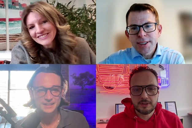 © Speditalks顺时针方向:来自 HTS 的 Christine Hüttges、来自 Rathmann Communications 的 Matthias Rathmann、来自 Spedifort 的 Andreas Rinnhofer 和来自 DXR 的 Tom Hansult。