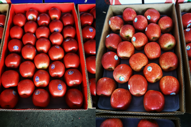 新西兰红玫瑰苹果(左)及嘎啦果(右)