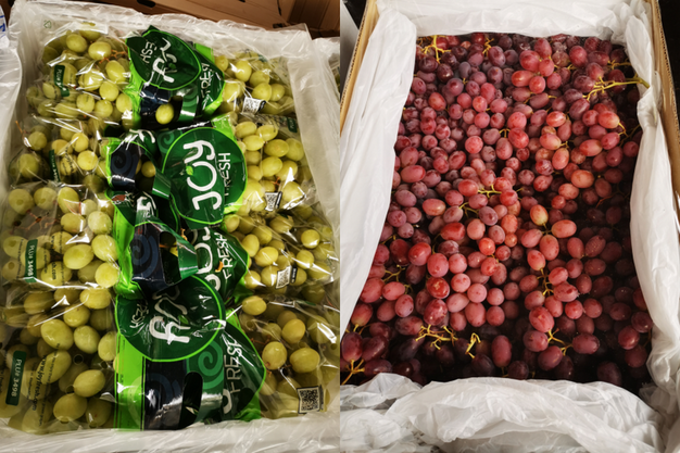 左:秘鲁秋脆青提;右:澳洲西班牙7号无籽葡萄