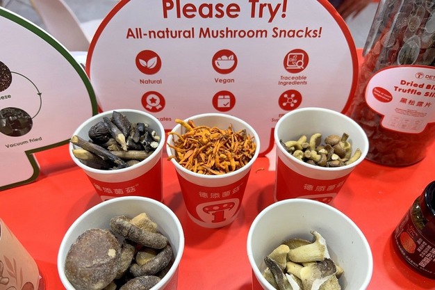 德添出口中国生产的多种栽培及野生菌菇,包括香菇、杏鲍菇、蟹味菇、白玉菇、金针菇、美味牛肝菌、鸡油菌、羊肚菌等,产品形式丰富,涵盖鲜品、干制、冷冻、冻干以及零售包装产品等。杨女士介绍:"我们的鲜品主要销往美国、荷兰、西班牙、德国等市场,而加工类产品则更多进入意大利、德国、瑞士等国家。我们的多样化产品结构满足了不同市场的需求。"