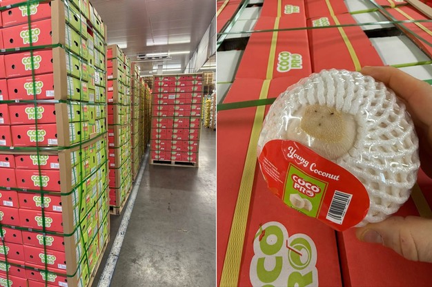 "现在往外看,可能还不太像热带地区,但不久之后,人们就能再次在自家花园里享受阳光了。我们每周都会收到新鲜椰子,包括棕色椰子和嫩椰子。其中很大一部分已经提前售出,包括下周五即将到货的这批。集装箱一到,大部分托盘的椰子就会立即发货。这样既能保证成本效益,又能确保椰子的新鲜度。"Martin 说道。