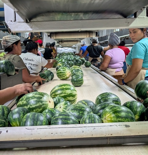 约 10% 的产量销往国内市场,欧洲市场消化了约 70%,美国市场则占剩余的 20%。随着时间的推移,这一比例发生了显著变化:公司创立之初,所有产品都销往美国。大约五年前,100% 的产品都销往欧洲。"如今,北美市场正在重新崛起,部分原因是蓟马和蚜虫传播的病毒性疾病对中美洲其他地区西瓜生产的打击比哥斯达黎加更为严重。"我们再次成为美国市场的优质选择,市场价格也反映了这一点。"