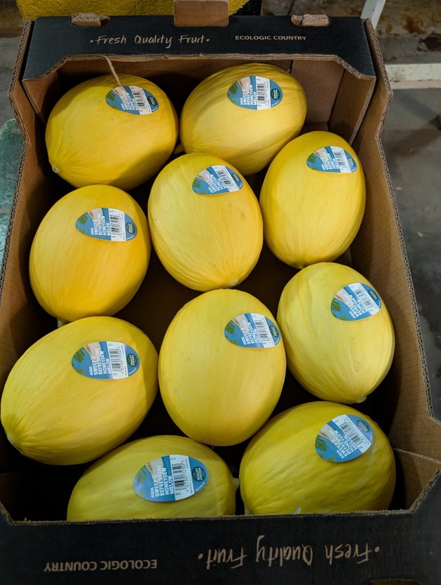 Melopen 种植黄色蜜瓜,少量种植哈密瓜(黄皮皱褶,橙肉),主要销往美国市场,以及各种西瓜:从中等大小的有籽品种到无籽品种,大小有大、中、小三种,重量从 1 公斤到 12-14 公斤不等。西瓜种植面积约占总种植面积的 70%,其余部分种植甜瓜。