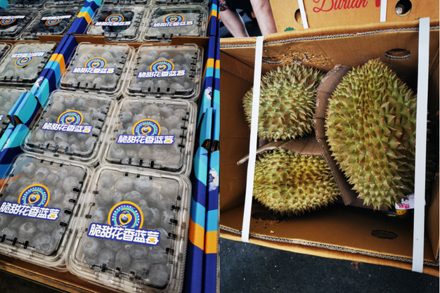 左:蓝莓;右:泰国金枕榴莲