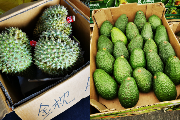 左:泰国金枕榴莲;右:秘鲁牛油果