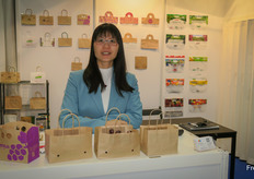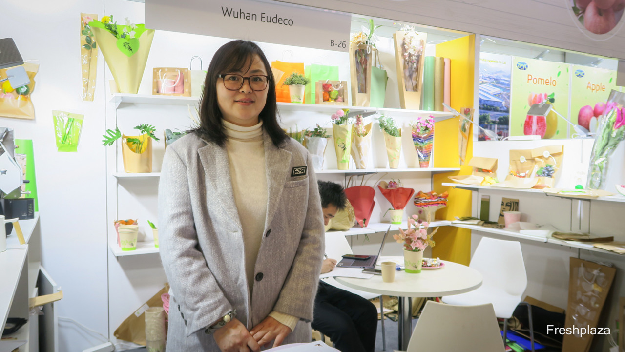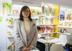 武汉优地工贸易有限公司用纸做环保包装。照片上是 Eileen Ye。/ Wuhan Eudeco makes packaging from paper, eco friendly. On the photo is Eileen Ye.