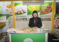 莱芜澳博进出口有限公司(莱芜佳品果蔬有限公司)从中国出口生姜、大蒜和即食玉米。照片上是总经理孙玉平(Sandy Sun)。/ Laiwu Aobo Import & Export exports ginger, garlic and ready-to-eat corn from China. On the photo is Sandy Sun, General Manager.