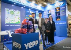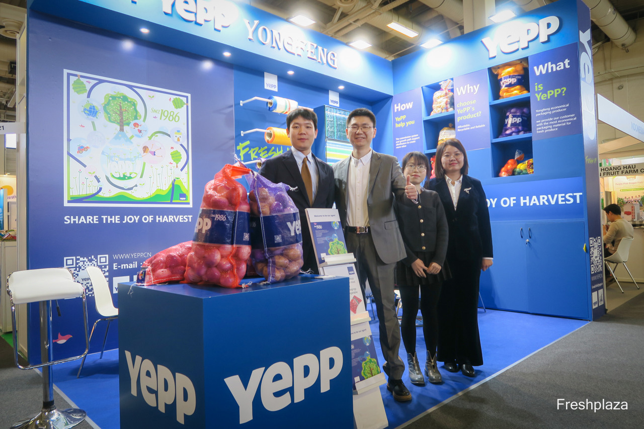 宁波永峰包装用品有限公司的 YEPP 品牌是生产用于自动包装线的 PE 拉舍尔卷袋和 PP 纱罗袋的生产商。左边的石耀隆是公司的经理。/ Ningbo Yongfeng Packaging Co.Ltd  with the brand YEPP is a producer of PE raschel bags on roll and PP Leno wicketed bags for automated packing lines. Shi Yaolong to the left is the company's manager.