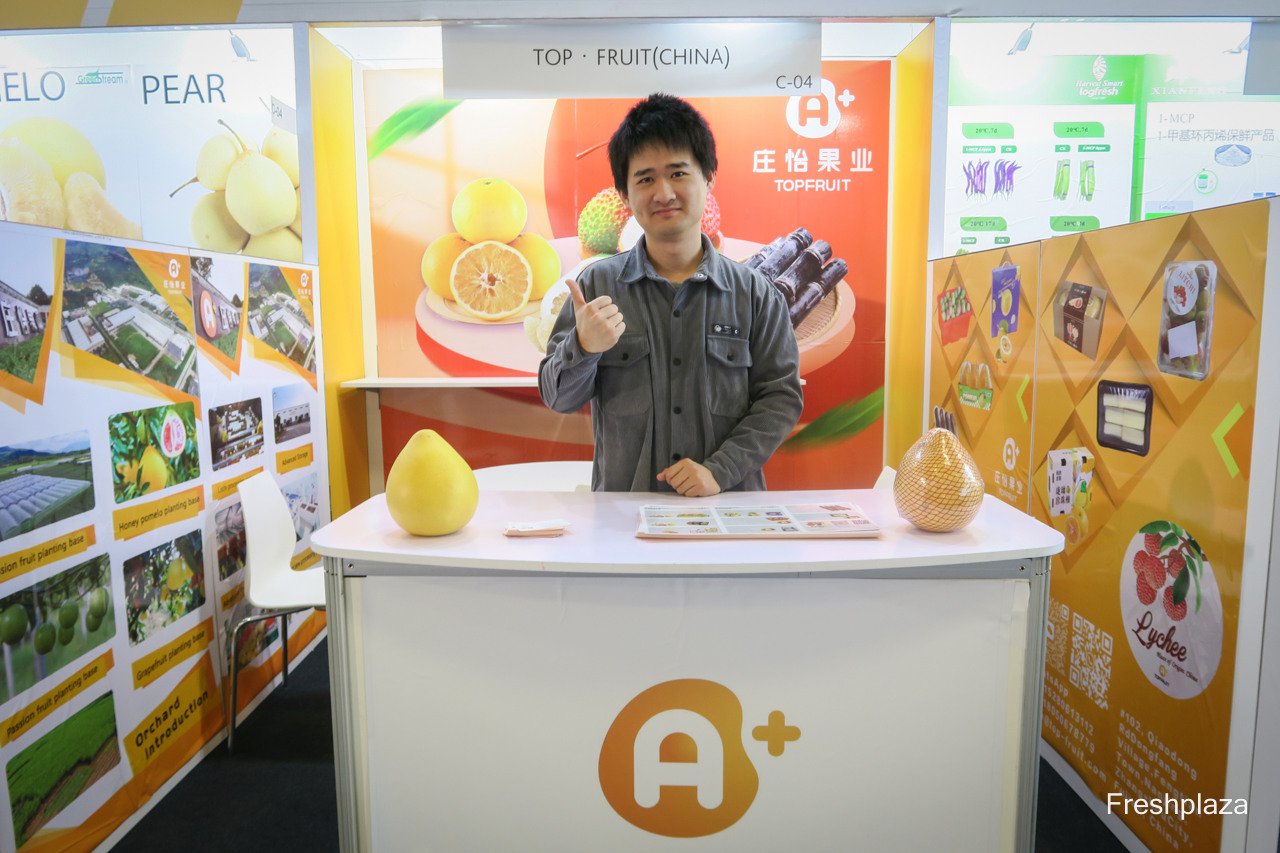 来自中国的 Top Fruit 是新鲜荔枝和柚子的种植商和出口商。 Tom Yan 是该公司的国际代表。/ Top Fruit from China is a grower and exporter of fresh litchi's and pomelo. Tom Yan is the international representative at the company.
