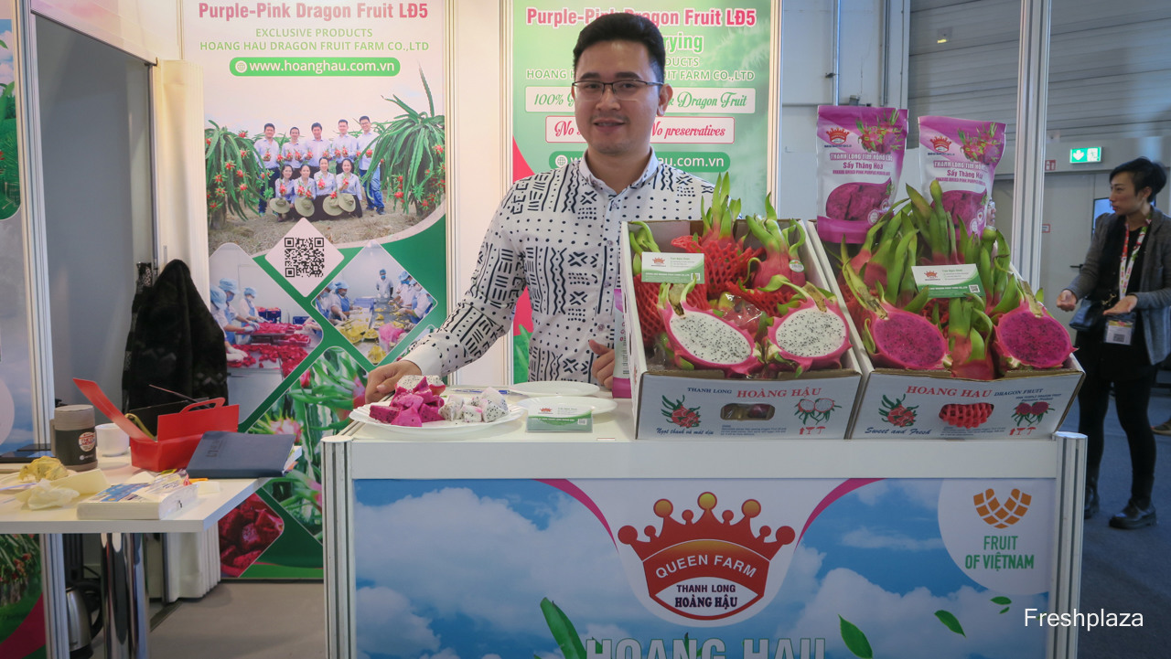 Tran Ngoc Hoan 是 Hau Dragon Fruit Farm 的营销经理,该公司是 Queen Farm 品牌的越南外来水果出口商。/ Tran Ngoc Hoan is marketing manager at Hoang Hau Dragon Fruit Farm, exotics exporter from Vietnam fro the Queen Farm brand.