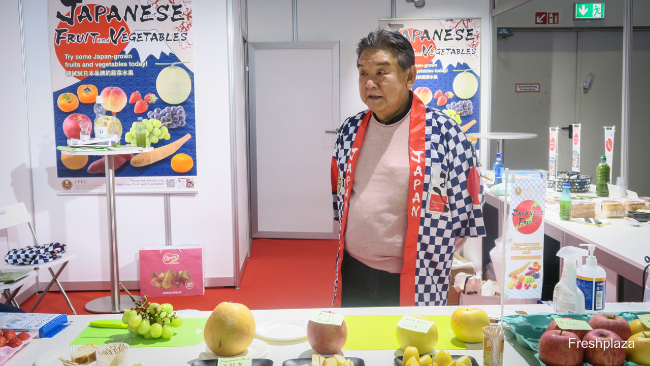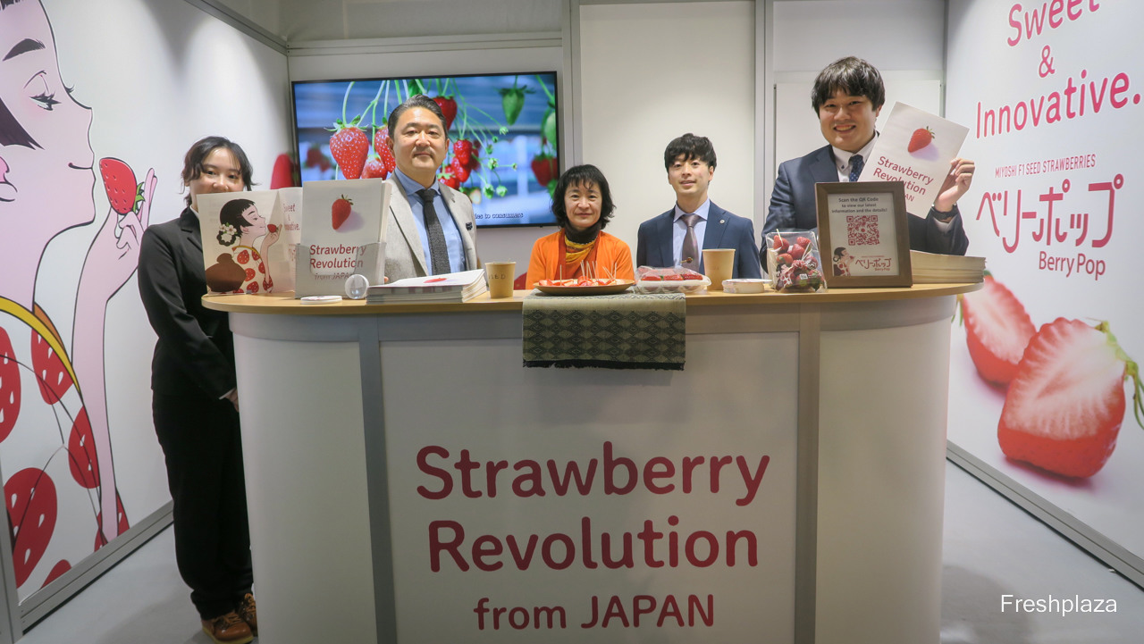 日本的 Miyoshi Group 很高兴其草莓种子现在可以出口到欧洲。日本以其优质草莓而闻名于世。右边的 Yuki Otsuka 负责国际销售。/ The Miyoshi Group from Japan is excited that its strawberry seeds can now be exported to Europe. Japan is known regionally for its high-quality strawberries. Yuki Otsuka, to the right, is responsible for international sales.