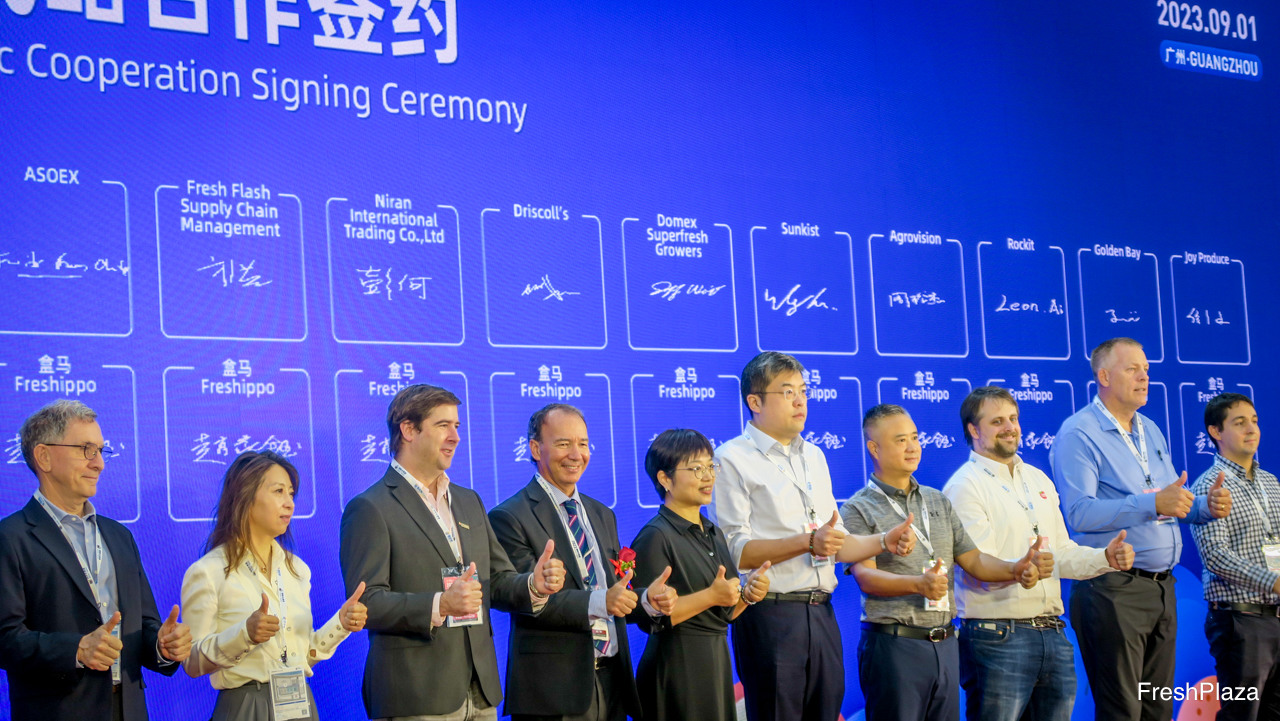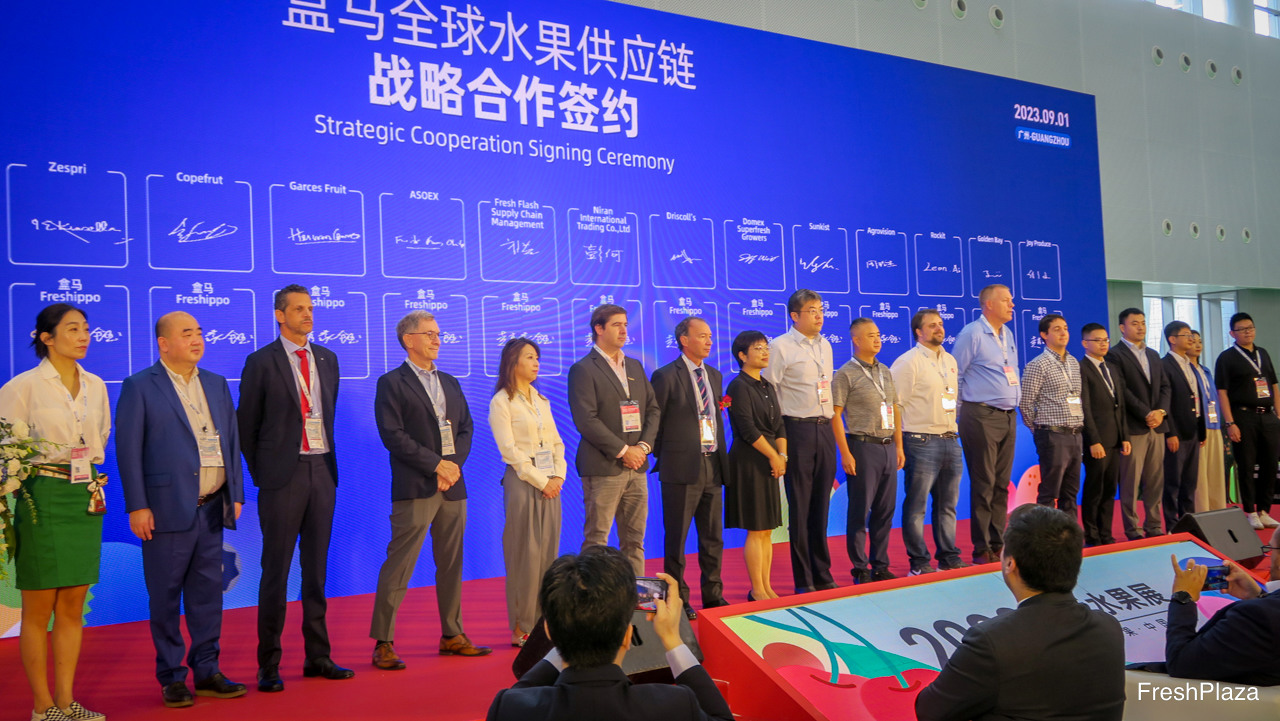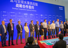 盒马与其国际合作伙伴签署战略合作协议,为中国市场消费者提供新鲜水果。/ Strategic Signing cooperation between Hema and its international partners supplying fresh fruits to the Chinese market.