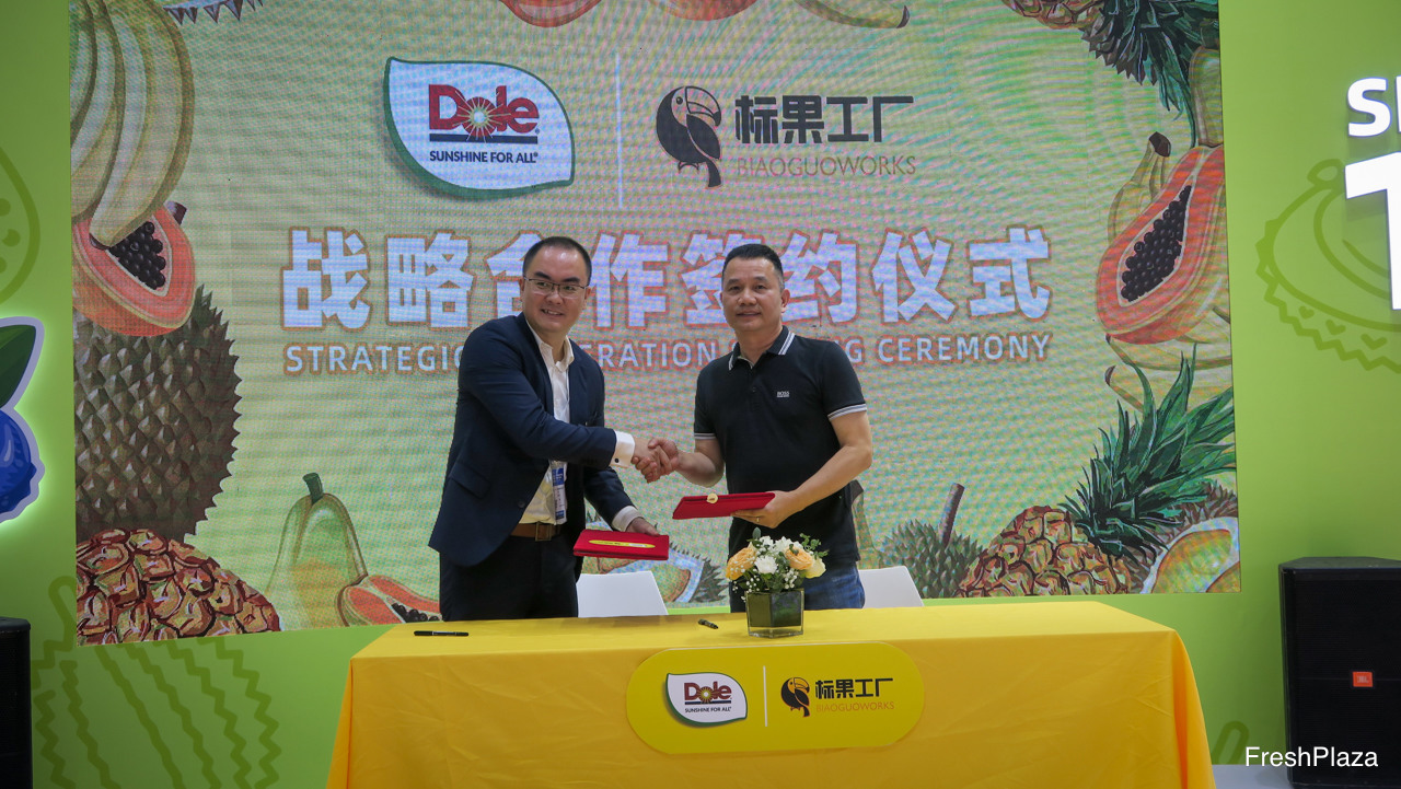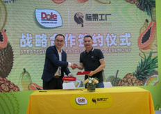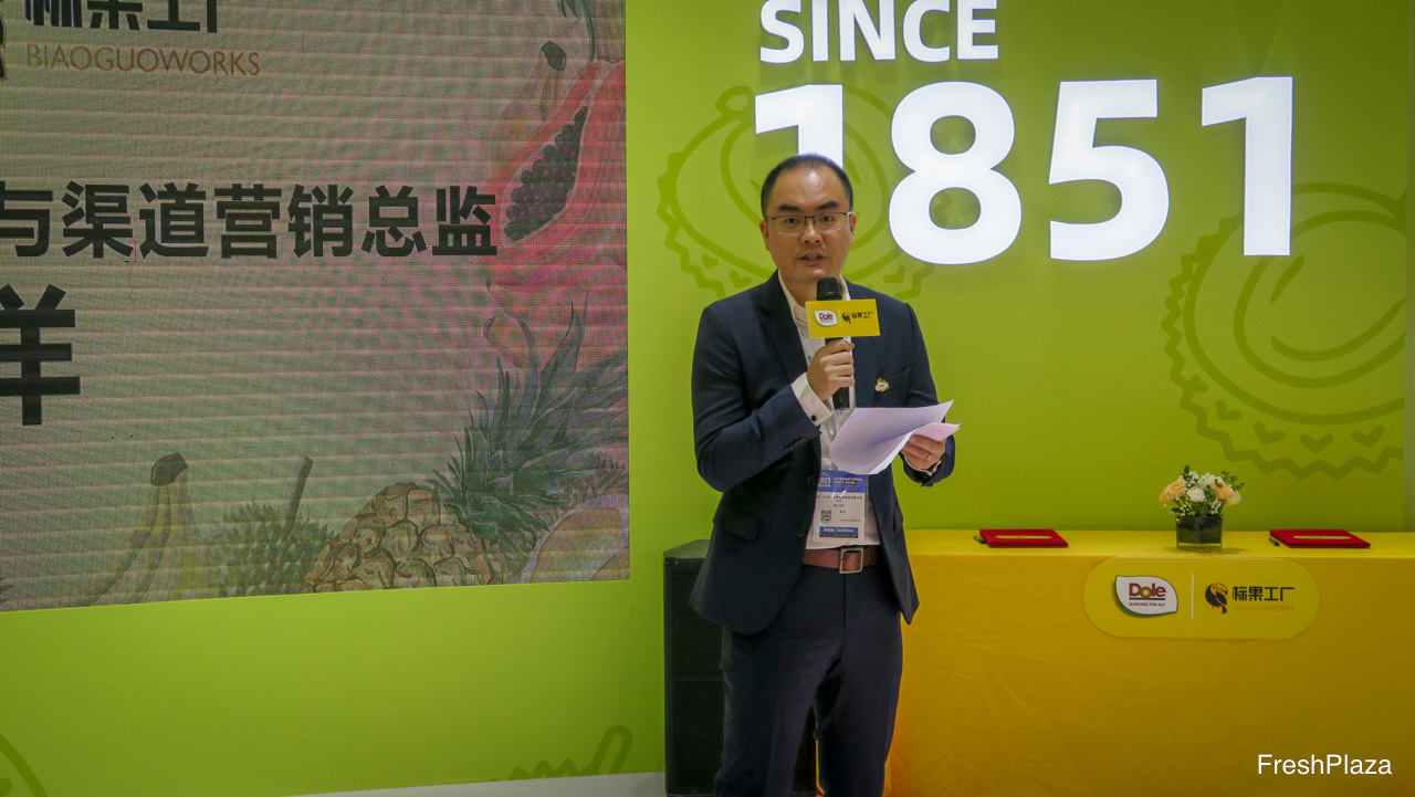 都乐中国与标果工厂签订战略合作协议。图为来自标果工厂的刘显付。标果工厂是中国的一家互联网零售企业,同时拥有实体门店。/ Dole China Strategic Cooperation Signing Ceremony between Dole China and BiaoGuo Works. On the photo is Liu Xian Fu from BiaoGuo Works. BiaoGuo works is an online retailer which also has physical stores in China.
