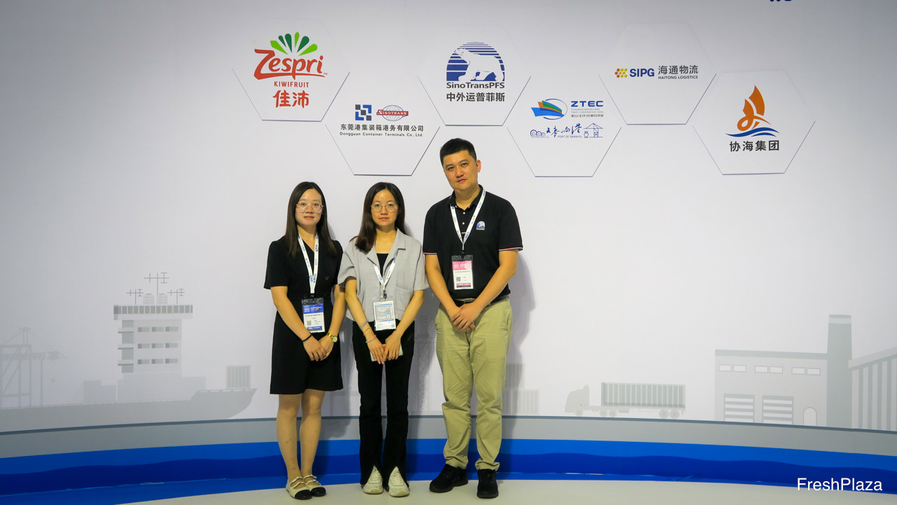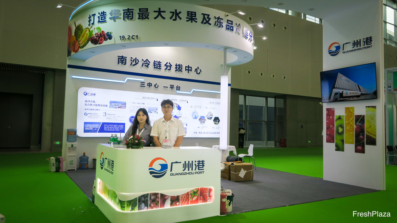 广州港是新鲜水果的主要进口港口,果品到港后销售至全国。广州南沙国际冷链公司代表该港口。图中为客户经理沈炜然。/ Guangzhou is a major import port for fresh fruits, that are then distributed across China. Guangzhou Nansha International Cold Chain represents the port. On the photo is Shen Weiran, Customer Manager.