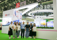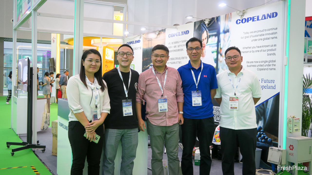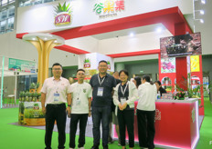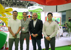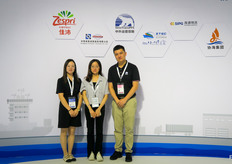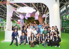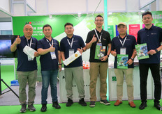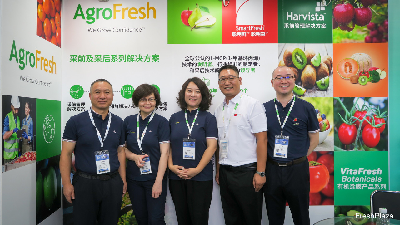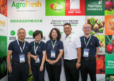 AgroFresh自2016年首次返回中国市场,并携大型公司团队参展。公司为中国市场的采后领域作保证,并很高兴能参加展会。图为(由左至右)孙希生、毕岚、姜丹、白奎宁、段雨苇。/ First time for AgroFresh to be back in China since 2016 with a large presence at a trade show. The company made a big commitment to the post-harvest Chinese market and is very happy to be present. On the photo are (from left to right):Xisheng Sun, Lan Bi, Angela Jiang, Kuining Bai, Patrick Duan.