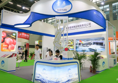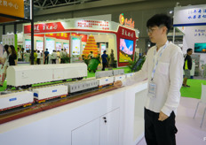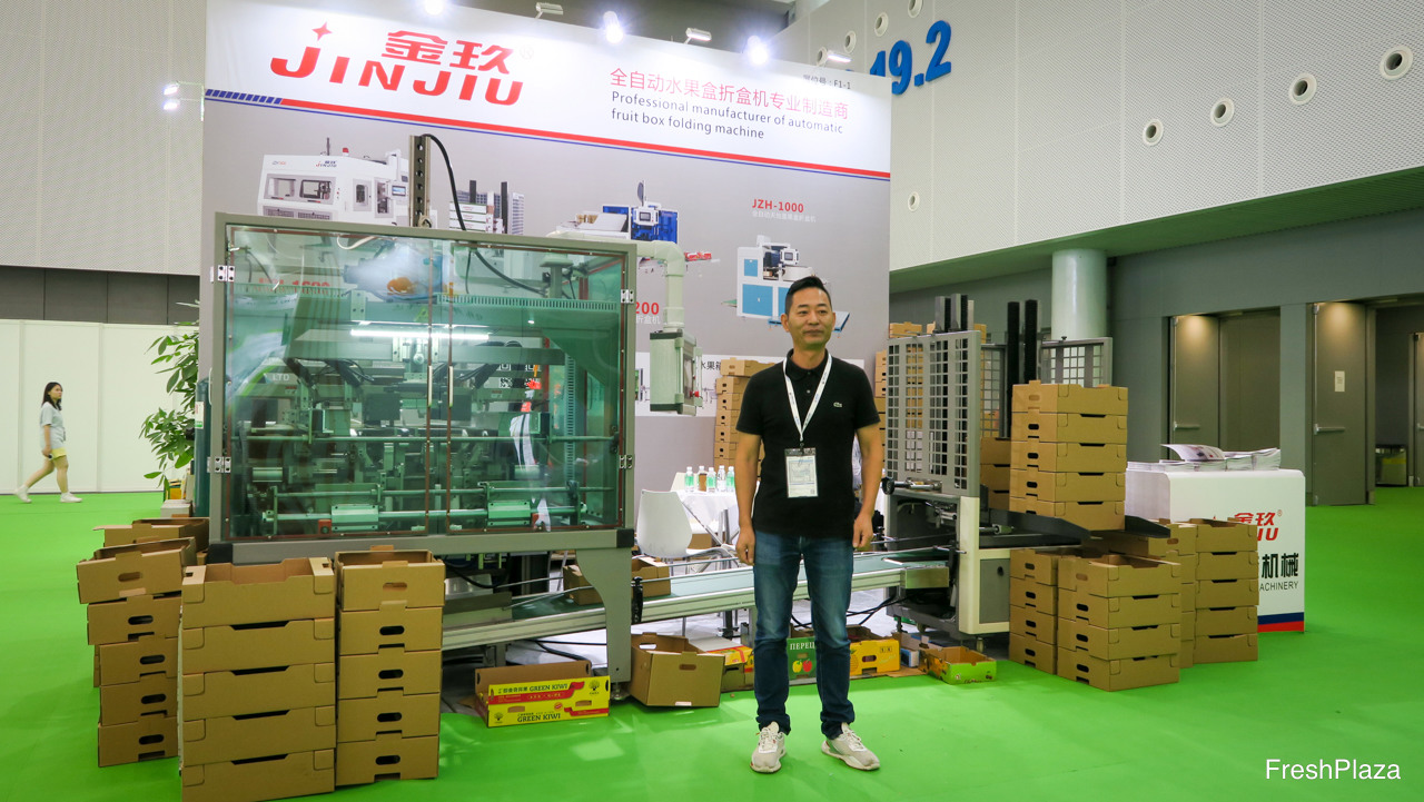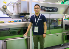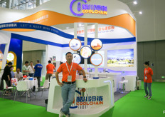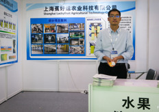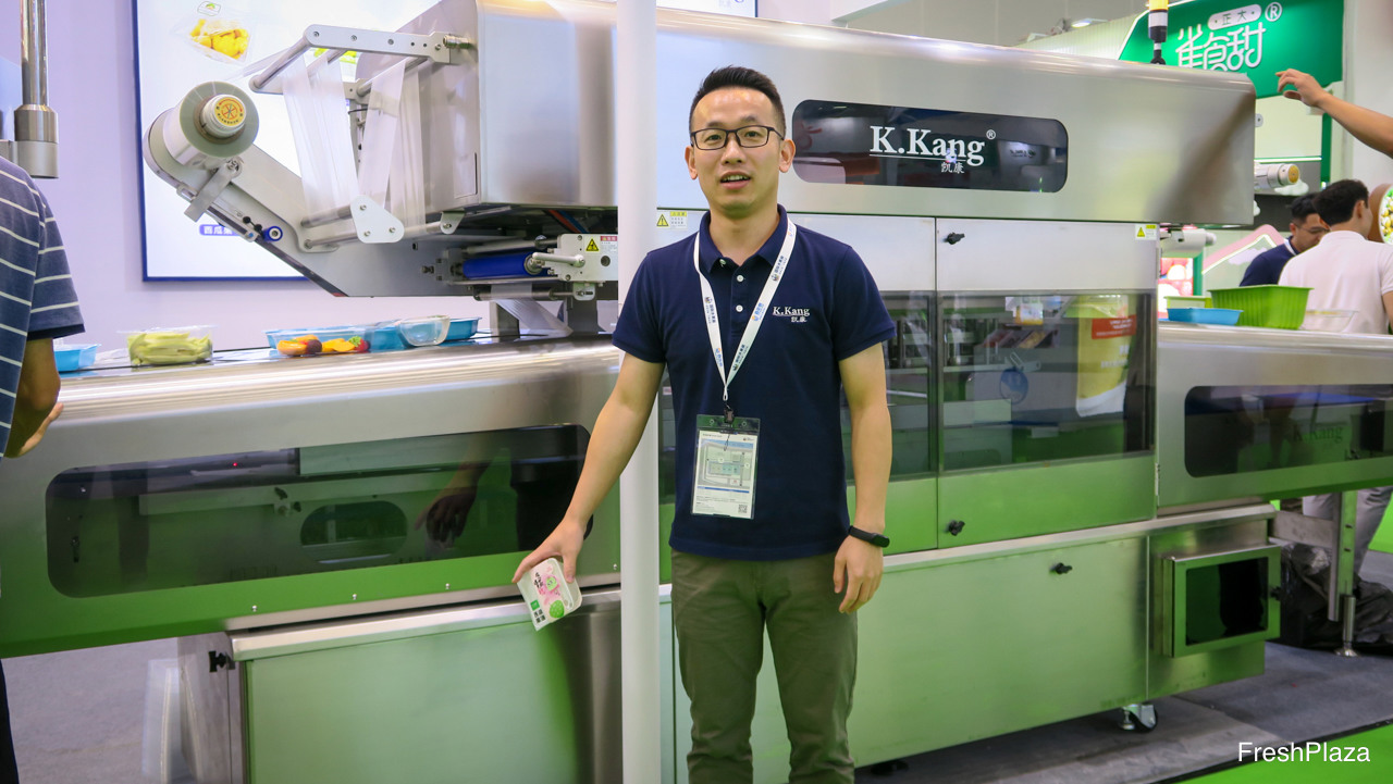 来自江苏的凯康机械,致力于生产可制作水果气调保鲜包装的机械设备。此项技术及应用正在中国发展。图为陈先生。/ K.Kang from Jiangsu develops machines for Fruit Modified Atmosphere packaging. This technology and its applications is growing in China. On the photo is Mr Chen.