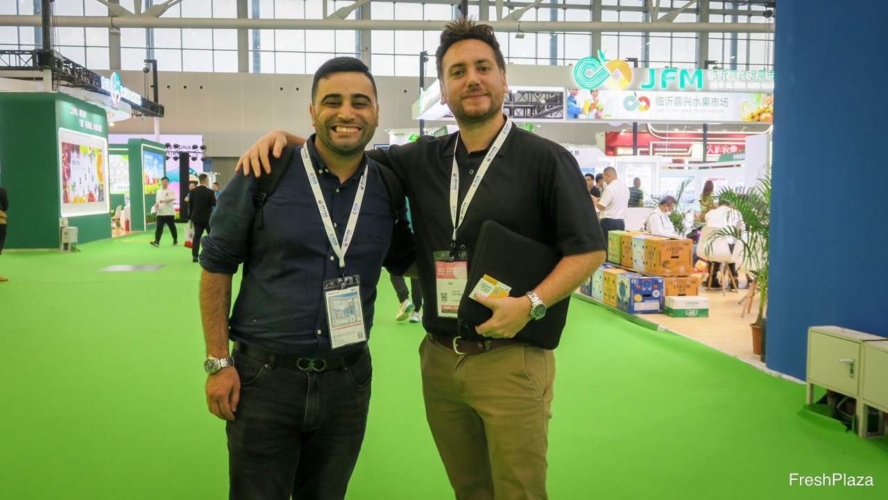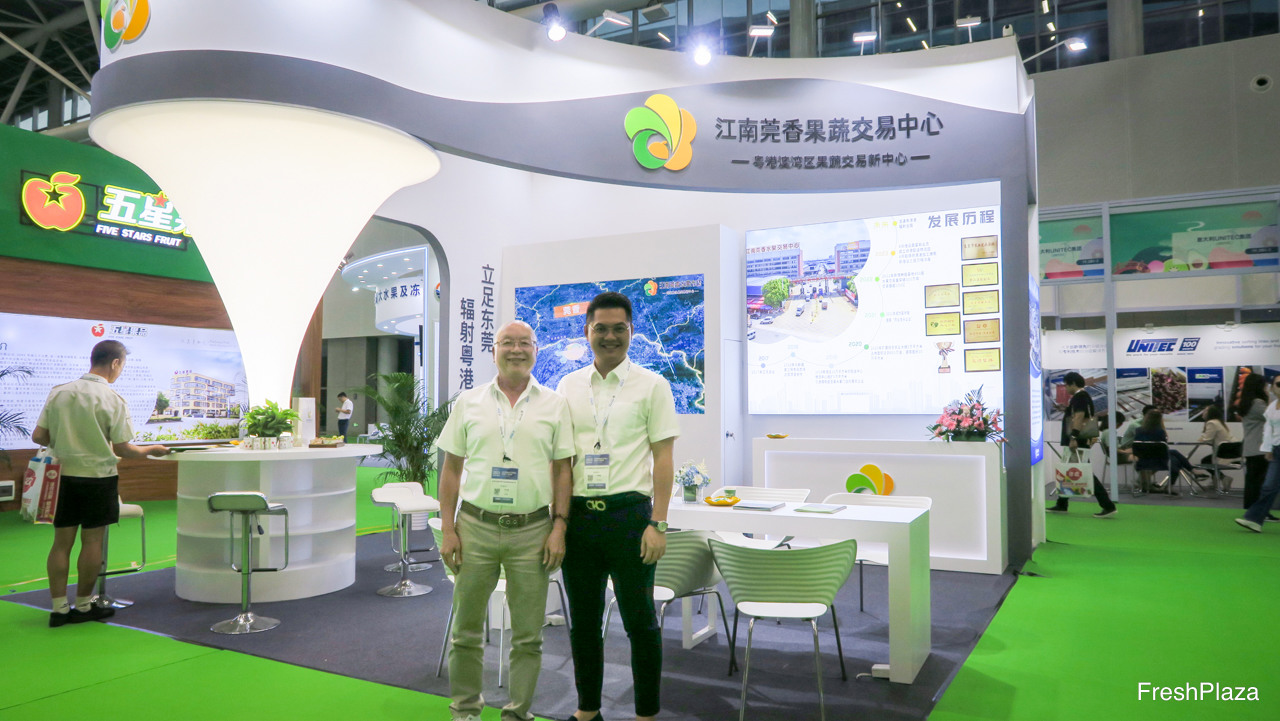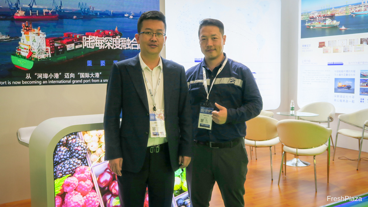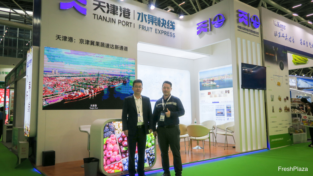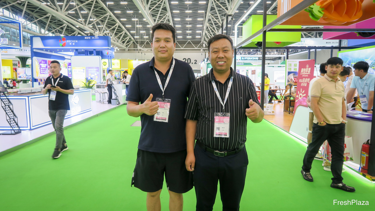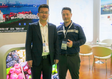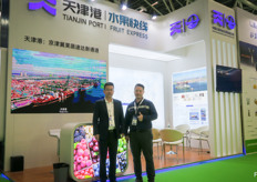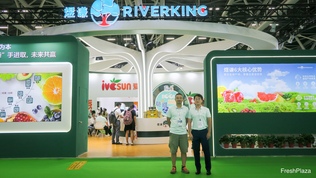 煜谦供应链是上海的一家大型进口贸易商。除了进口水果以外,公司并致力于冷冻干果业务。公司已开启了出口业务,以及在中国以外的国际贸易业务。图为黄龙先生和彭锐先生。/ RiverKing is a larger importer and trader from Shanghai. In addition to fruit imports, Also focussing on freeze dried fruits. Thirds of the company is starting its export business, and conducting international trade outside China. On the photo are Bake Huang and Oliver Peng.