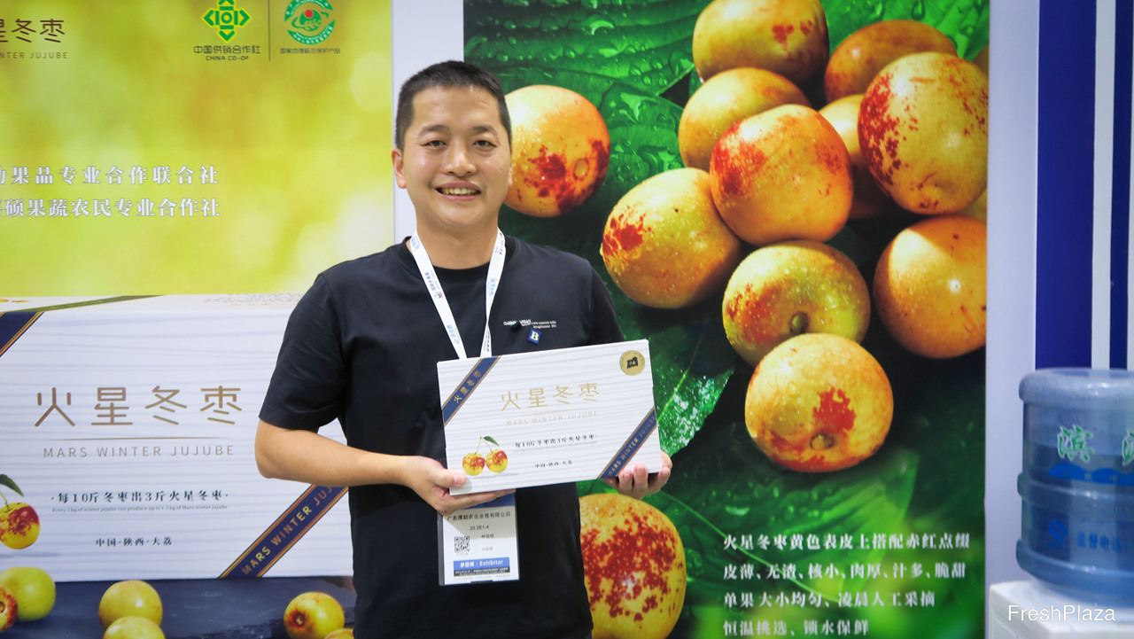 来自厚助农业的林昭明。该公司种植并销售高端陕西大荔冬枣。/ Mr Lin from Houzhu Agriculture,the company grows and markets premium winter jujubes of Shanxi.