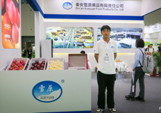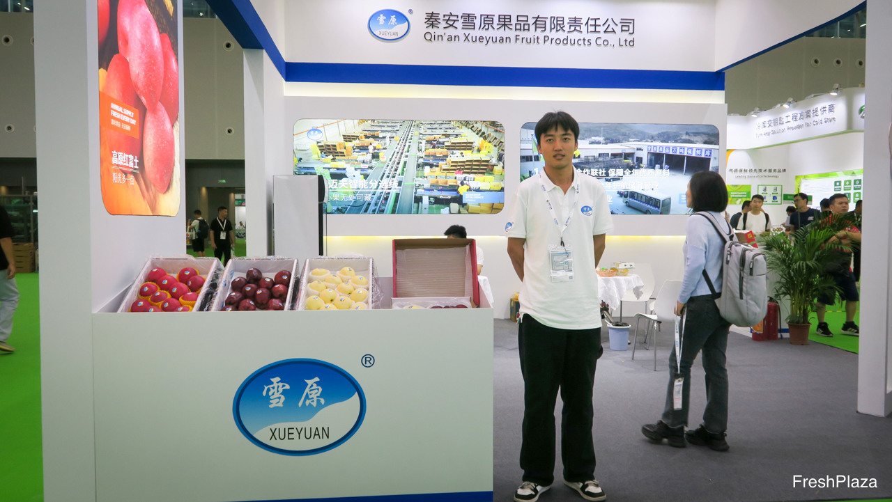 陕西大唐现代农业作为国产与进口水果品牌的经销商,以批发市场为销售渠道。公司以“唐美”为品牌销售陕西果品,如猕猴桃、苹果等。图为该公司的李卓凯经理。/ Shaanxi DaTang Modern Agriculture is active on the wholesale market as distributor of Chinese and international brands. The company also markets Shaanxi products like kiwi fruit and apples under the Tang Mei brand. On the photo is Zhuokai Li, the Manager.