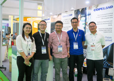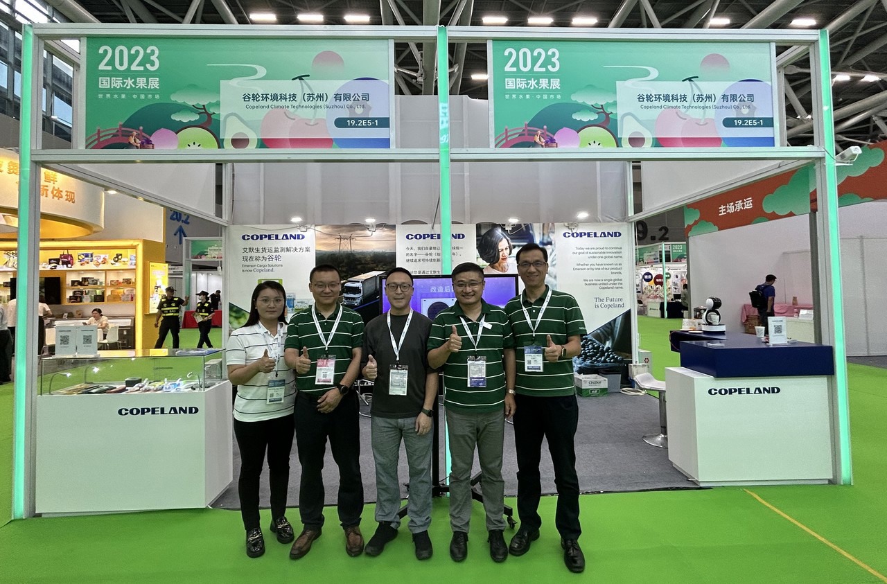Copeland谷轮环境科技是一家数据追踪设备制造商,包括追踪温度、地点、湿度等。图片从左至右:技术支持Amanda Zhou,冷链总监及团队领导Pacer Wang,供应链经理Anderson Tao,中国区销售经理Pete Yu, 市场经理Younker You / Copeland is a producer of data tracking devices, including temperature, location and humidity. On the photo are (from left to right): Amanda Zhou (Technical support), Pacer Wang (Cold Chain Director, team leader) , Anderson Tao (Supply Chain manager), Pete Yu (China sales manager), Younker You (Marketing manager).