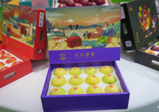 昭阳红的品牌苹果礼盒包装 / Branded apples in gift packaging boxes from ZhaoYang Hong.