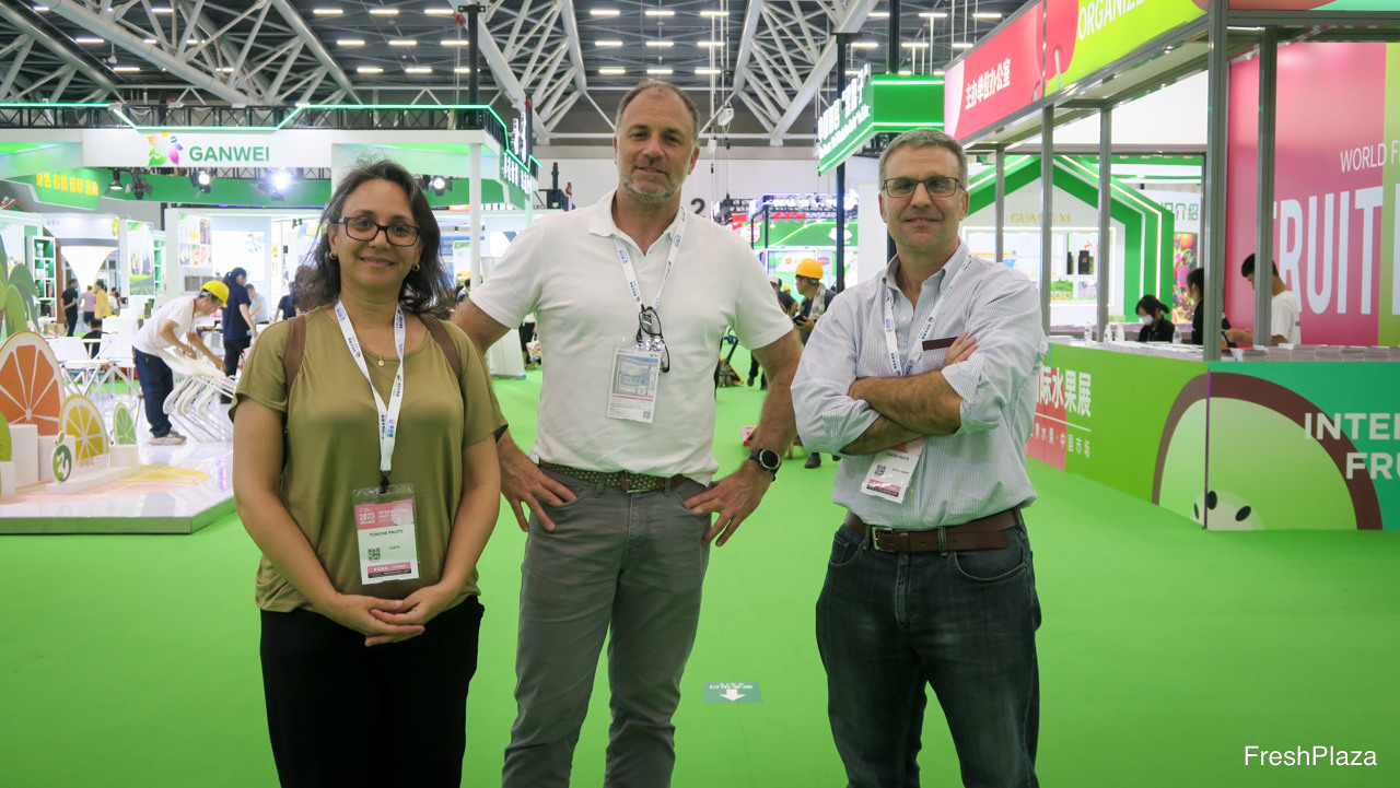 智利Tuniche Fruits的Veronica Costa, Cristobal Duke 和 Francisco Esguep。团队正在中国各地会见客户及各新老朋友。/ Veronica Costa, Cristobal Duke and Francisco Esguep from Tuniche Fruits from Chile. The team is on a round trip through China to meet with customers and old and new acquitances.