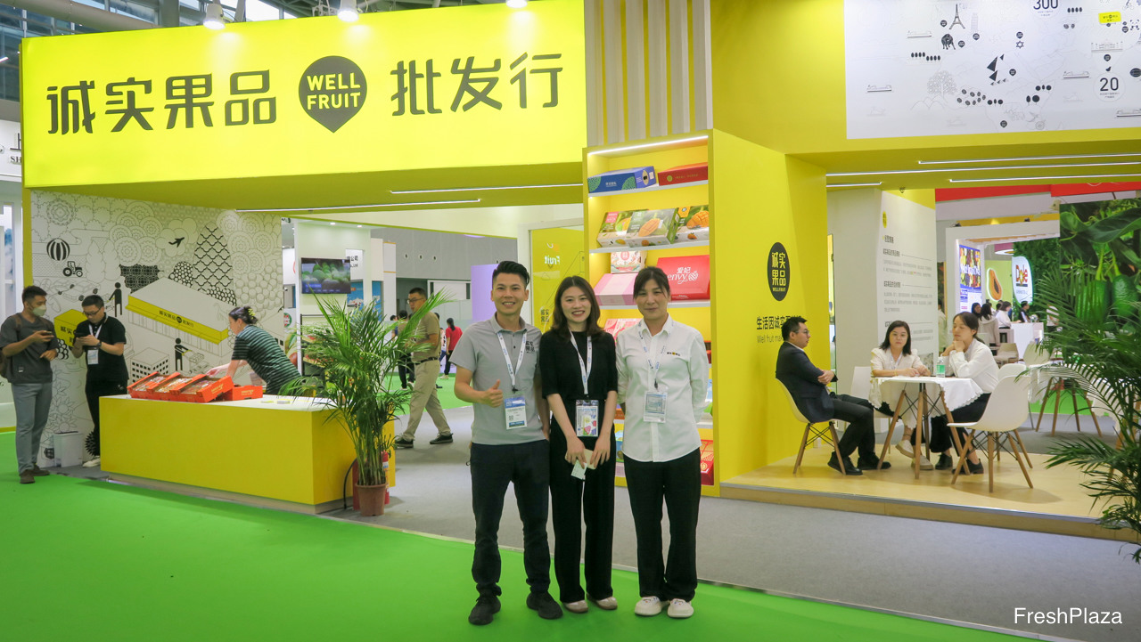 上海诚实果品在国内首创水果“仓储连锁零售”,并逐渐发展为包括产地直采、仓储服务、及鲜果零食门店等的企业。图为采购总监Carver, 产品经理付维等。/ Shanghai Wellfruit started as a 'wholesale fruit store' and has evolved to a company that is active in direct sourcing, warehousing services and chain fresh fruit stores in China. On the photo are Carver, Procurement Director, and Stella Fu, Product Manager.