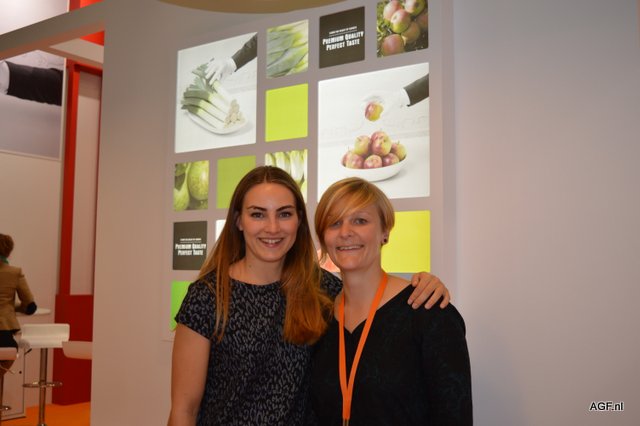 左边是Thaïs Mees, 右边是Nele van Avermaet, 她们是Vlam的新面孔,此行目的是对果蔬进行促销。