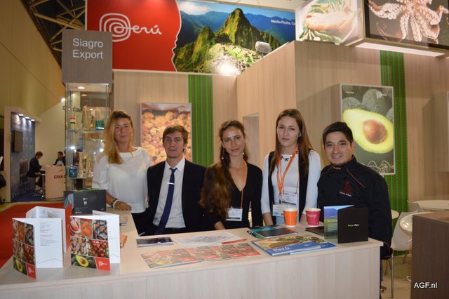 许多秘鲁公司也出席了此次展会。从左到右为: Nelli Filippove, Vlacheslow Rynetin, Irina Chegodaikina, Ekaterina Drozhzhina和Orlando.