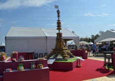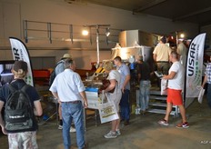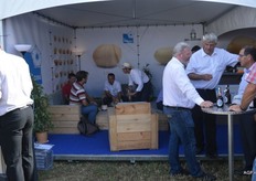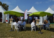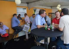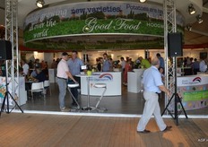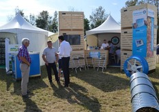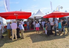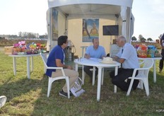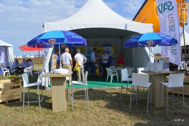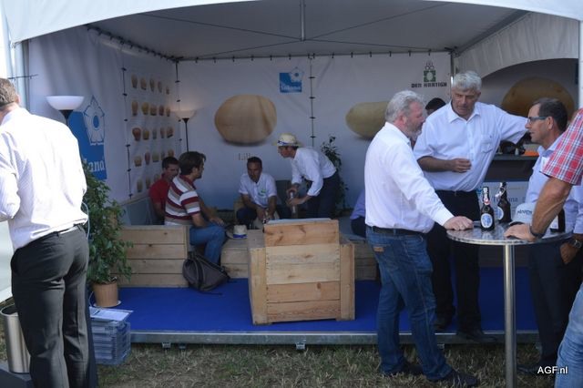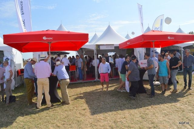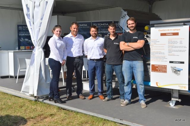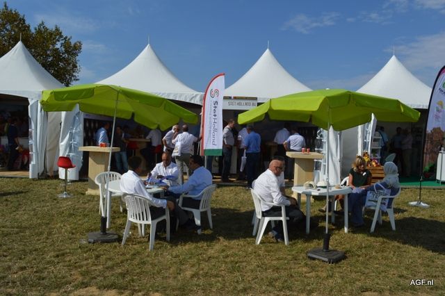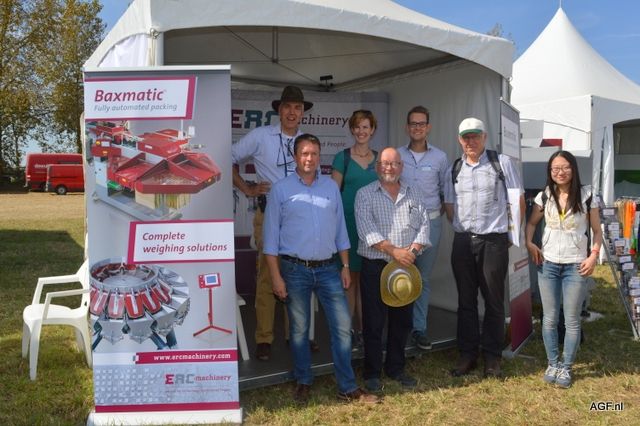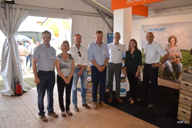 荷兰驻法国大使Ed Kronenburg (右边) 和农业委员会的Cindy Heijdra(左边第二位) 来到交易会进行访问。此外,照片上为: Jan Gottschall (NAO), André Adamse (Schaap Holland), Dick Hylkema (NAO), Hans Geling和Gesly Slomp (都来自Schaap Holland)。
