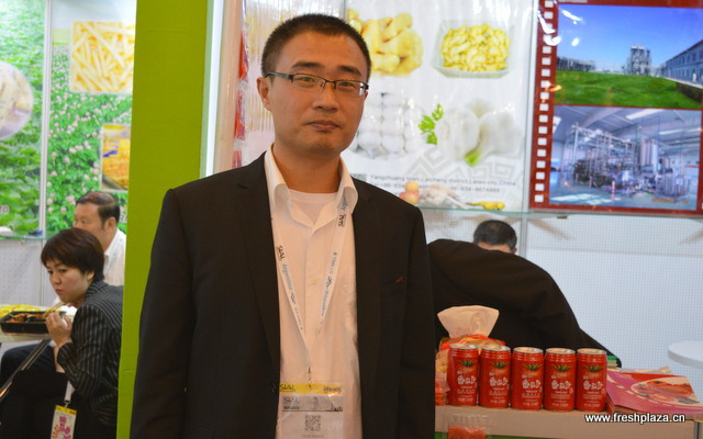 济宁宏万年商贸公司的经理Sammy Shan,该公司附属于华光集团。该公司出口加工大蒜和辣椒,也有一些新鲜产品,包括苹果,梨和栗子.
