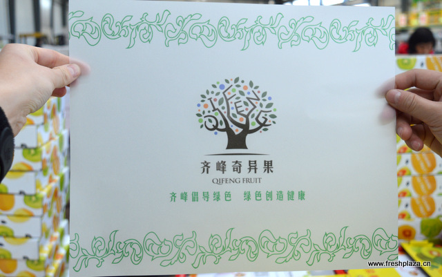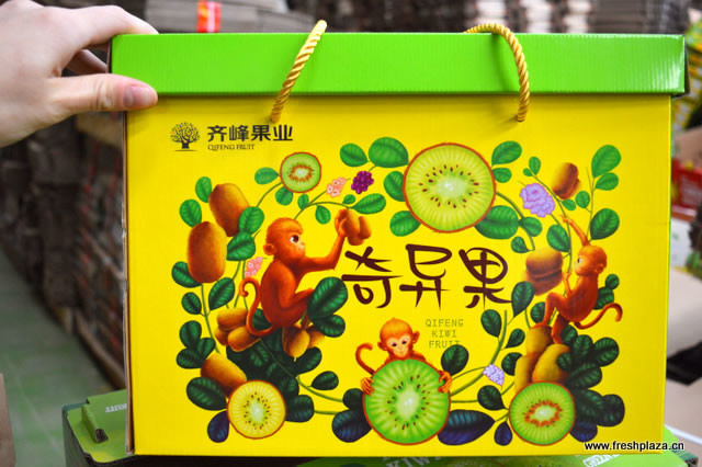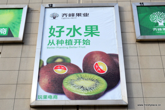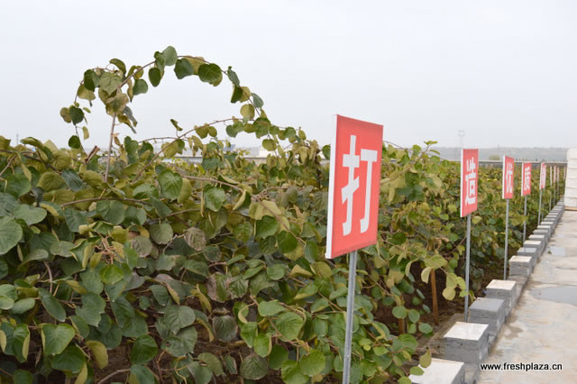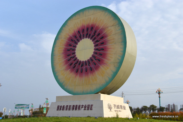 在齐峰果业入口处的具有中国特色的红心猕猴桃.